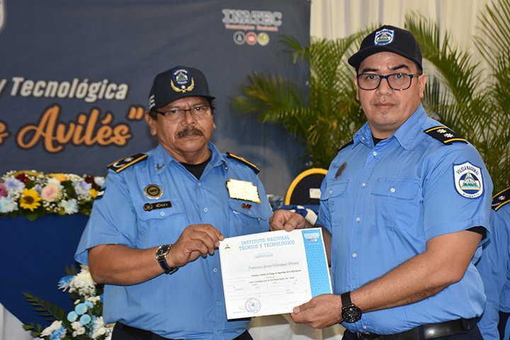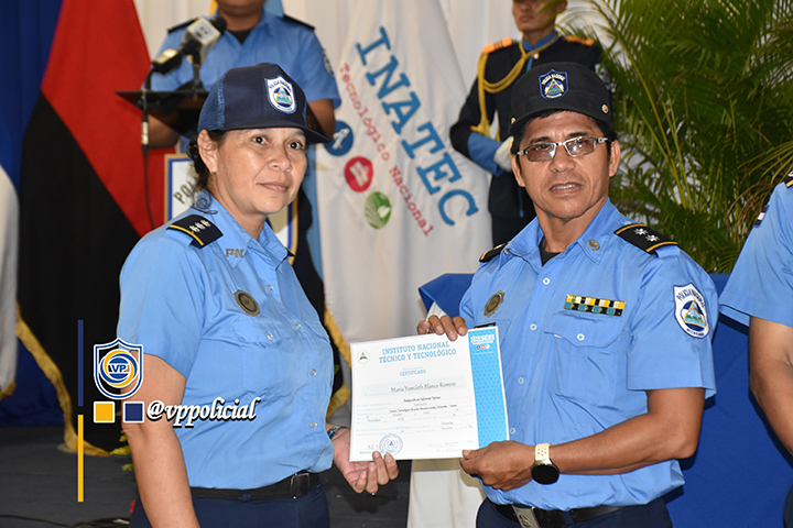 Un total de 500 oficiales, 239 mujeres y 261 varones, culminaron sus cursos en línea de la cuarta edición del programa de Formación Técnica y Tecnológica “Angelita Morales Avilés” que se imparte en coordinación con el Instituto Nacional Tecnológico (INATEC) del año 2025.