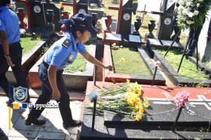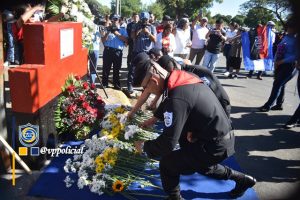 Con orgullo revolucionario y patriótico, la Policía Nacional conmemoró el 56 Aniversario del Paso a la Inmortalidad del Poeta y Héroe Leonel Rugama, quienes depositaron una ofrenda floral en el monumento dedicado al Poeta Revolucionario, ubicado frente al cementerio Periférico de Managua.