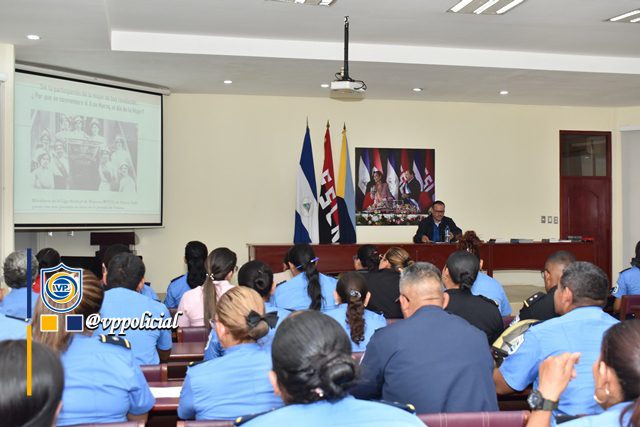 “Venir a compartir y fortalecer los conocimientos a las y los oficiales de policías, es un gran compromiso, porque sabemos que especialmente ellas trabajan día a día por la Seguridad de la nación, que dejan todo por venir a sus centros de labor para trabajar por todos y que bonito es escuchar que además se inspiran por el legado de grandes mujeres Revolucionarias que dieron y algunas siguen dando por la soberanía del país”, destacó el Licenciado Nelson Ortega, conferencista e historiador de la Alcaldía de Managua.