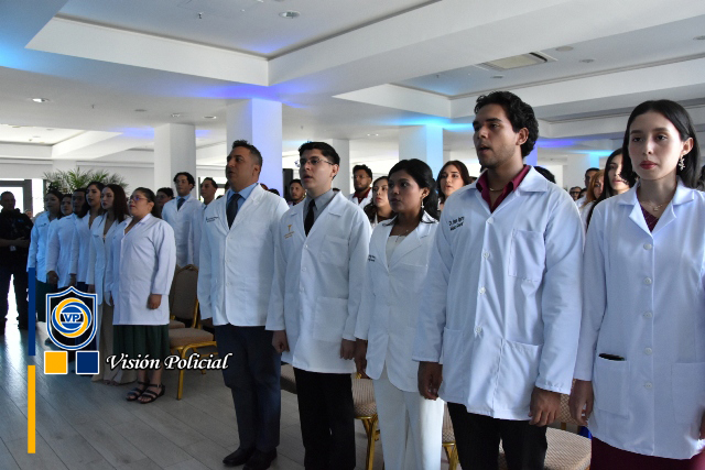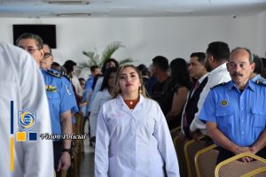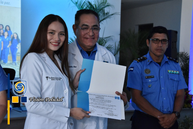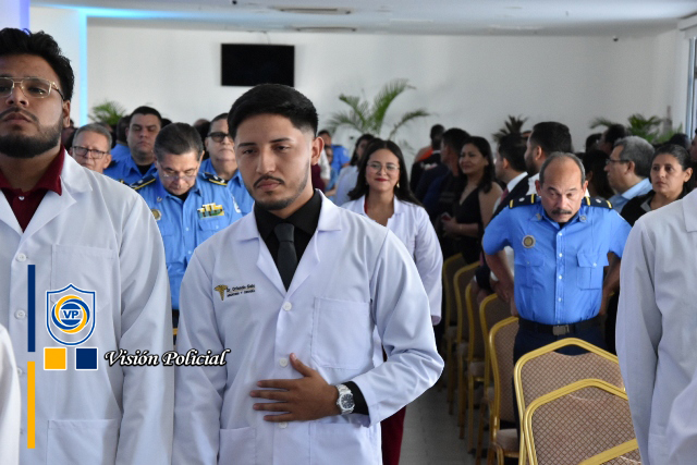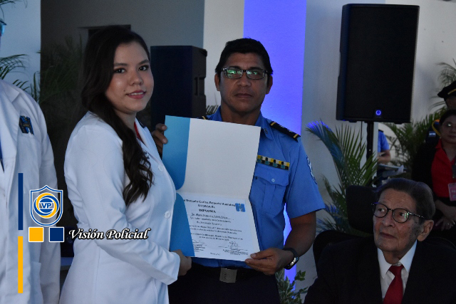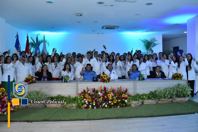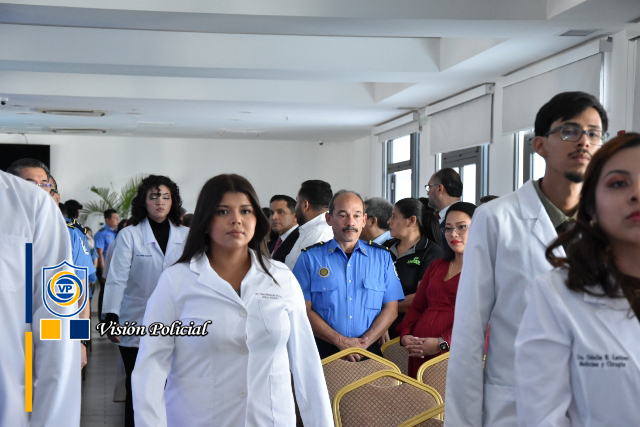 El acto de graduación estuvo presidido por el Primer Comisionado General Francisco Díaz, Jefe de las Fuerzas Policiales de Nicaragua, el Comisionado General Julio César Paladino, Rector de la Universidad de Ciencias Médicas y de Enfermería, la doctora Meyling Brenes Calderón, Ministra de la Salud, la compañera Reyna Rueda, Alcaldesa de Managua, el Comisionado César Leiva, Rector de la Universidad de Ciencias Policiales Leonel Rugama “Que se rinda tu madre”, y el doctor Julio Briceño Dávila.