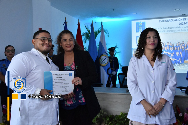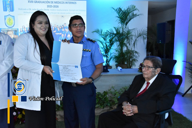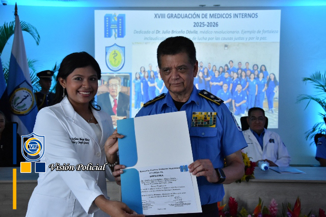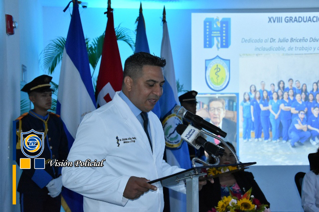 “Hoy estamos realizando un acto de profundo humanismo y compromiso patrio, esta Décimo Octava Graduación de Médicos no es solo la culminación de un ciclo académicos, representa la entrega de un nuevo contingente de profesionales al servicio de la vida, la salud y la paz de las familias nicaragüenses”, enfatizó el Primer Comisionado General.