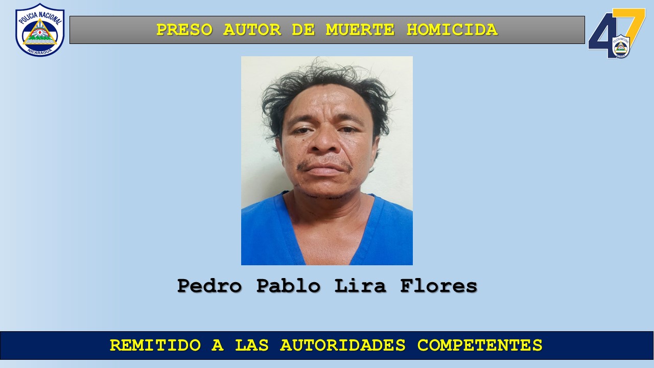 Como parte del trabajo investigativo que desarrolla la Policía Nacional en el municipio de Siuna, Triangulo Minero, logró la captura del sujeto Pedro Pablo Lira Flores, quien en estado de ebriedad y motivado por rencillas personales acabó con la vida del ciudadano Adonis Joel Gutiérrez García en el barrio Sol de Libertad Número 2.