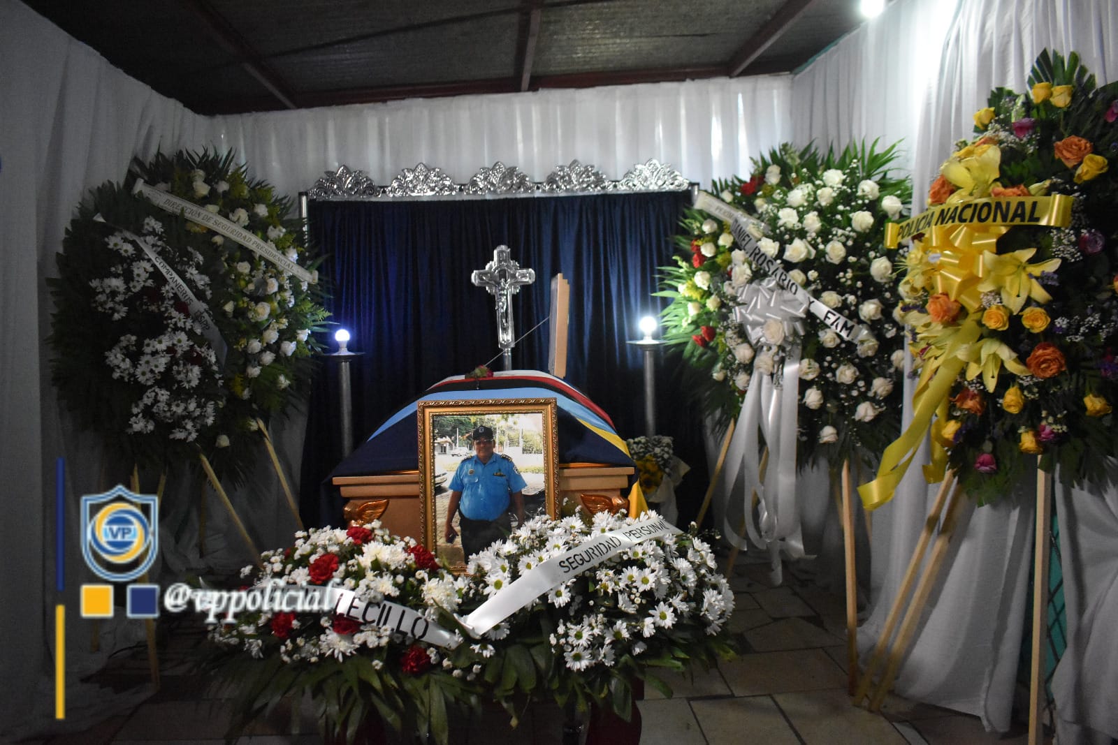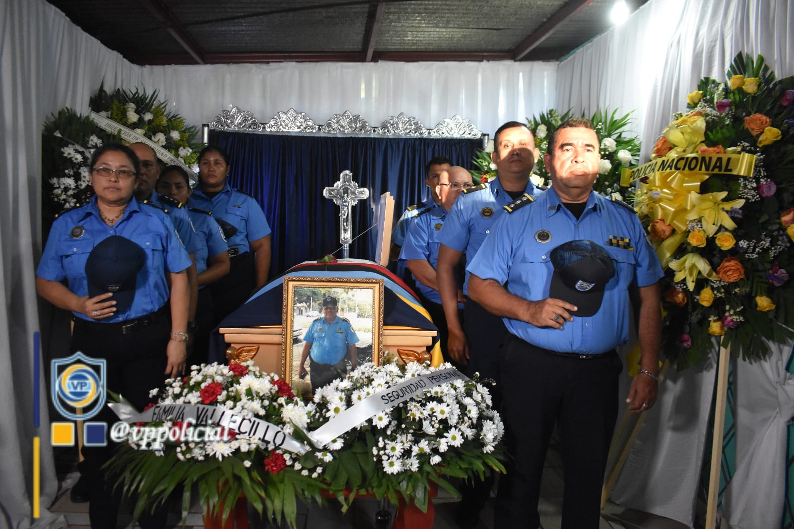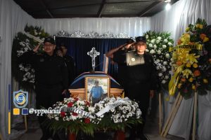 El acto solemne se realizó en la casa de habitación del Comisionado General Marcial Loáisiga, lugar donde han hecho presentes miembros de la Policía Nacional, Ministerio del Interior, compañeros de trabajo y funcionarios de las instituciones de nuestro Buen Gobierno, quienes expresan su pésame por la pérdida a la familia doliente.
