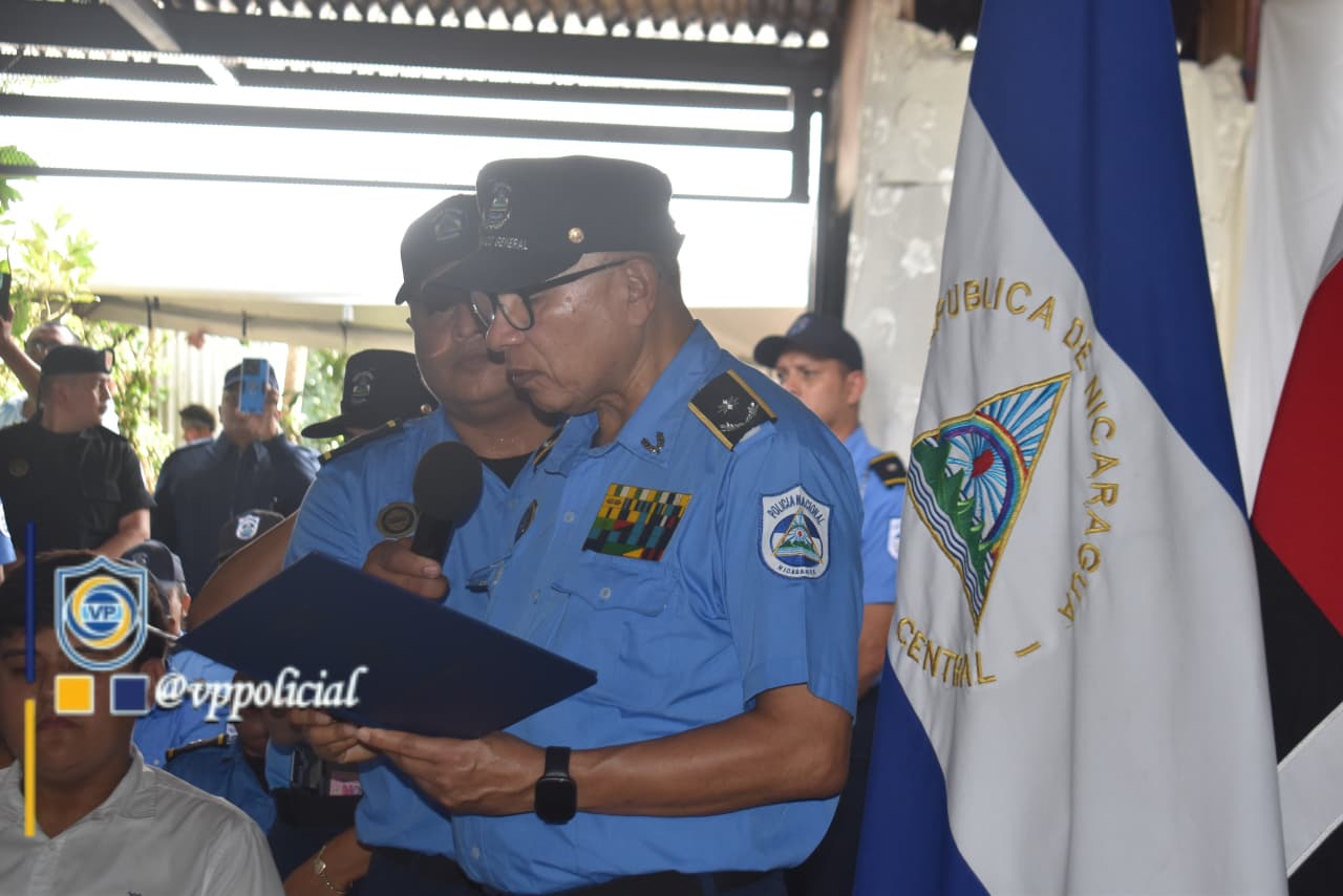 Primeramente, el Comisionado General Enrique Salazar, Jefe de la División de Personal y Cuadros, dio lectura al Acuerdo Presidencial 56-2026 que otorga la Presidencia de la República de Nicaragua al Comisionado General Marcial Erasmo Loáisiga Martínez a propósito de sus honras fúnebres.